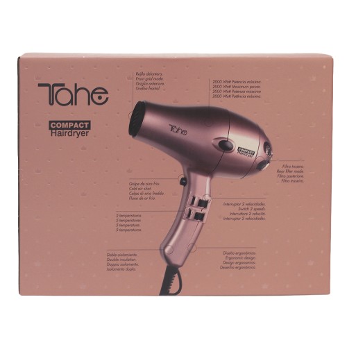 Muchos secadores compactos sacrifican potencia o versatilidad. El Tahe Compact no. Su doble aislamiento, rejilla y filtro desmontables, y su estructura sólida pero manejable lo convierten en un secador fiable, funcional y con acabados profesionales. Un básico con prestaciones de alta gama.