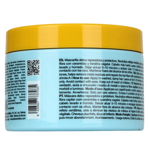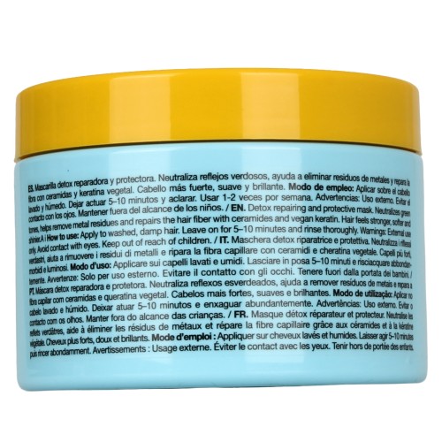 Non seulement il répare les dommages visibles, mais il aide également à restaurer la barrière lipidique du cheveu, lui redonnant élasticité, douceur et résistance. De plus, il complète le processus détox initié par le shampooing, garantissant une fibre capillaire plus équilibrée, plus forte et mieux protégée contre les agressions futures.