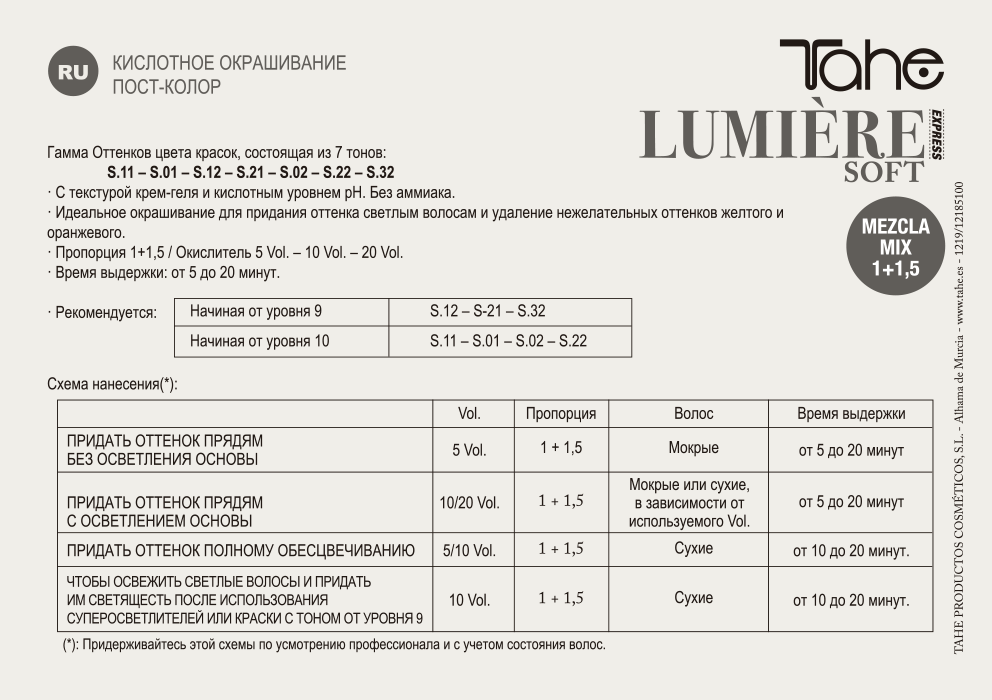 Приготовление: Использовать одноразовые перчатки. Применять исключительно с соотвествующими окислителями 5 Vol (1'5%) и 10 Vol (3%). В случае использования емкости для смешивания, следует открыть ее сразу же после смешивания, чтобы смесь не взорвалась и не запачкала помещение.